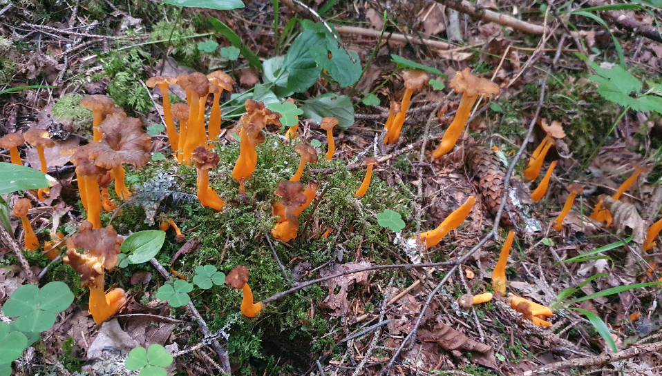 Vi var 6 personer som deltog trots corona. Glädjande hittade alla ca en halv liter rödgul trumpetsvamp. Detta var de allra första så vi lämnade tusentals små knappar. Några dagar med mycket regn nu så kan vi alla se fram mot en god svampskörd.