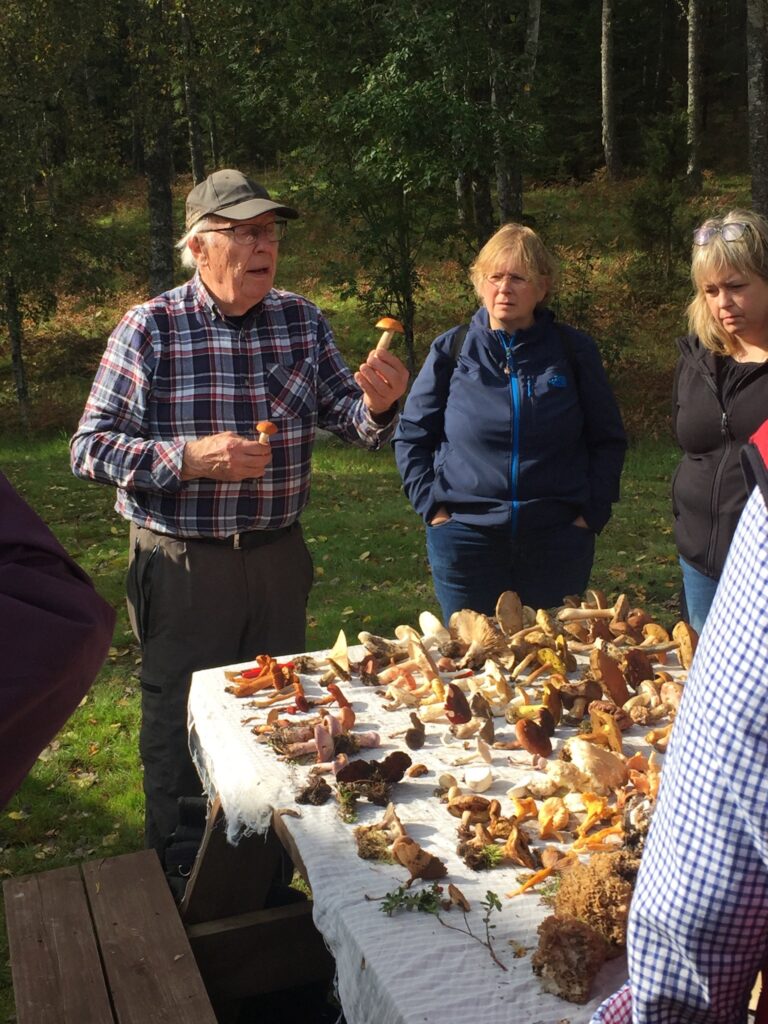 Vi hade en härlig höstdag på Omberg tillsammans med Linköpings svampklubb. På förmiddagen besökte vi Ombergsliden där vi plockade svamp i kalkbarrskog och i betesmark. Några särskilt spännande fynd var de ovanliga och rödlistade: brandtaggsvamp, tvillingspindling och blåmjölkig storskål. På eftermiddagen åkte vi till Stocklycke där vi plockade svamp i bokskogen. Några fina fynd härifrån var rak fingersvamp, skarp rökriska och den ”nya” taggsvampen Hydnum magnorufescens. Stort tack till Linköpings svampklubb som guidade oss på Omberg!