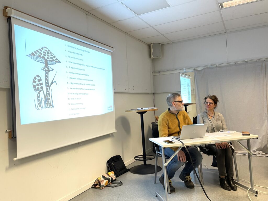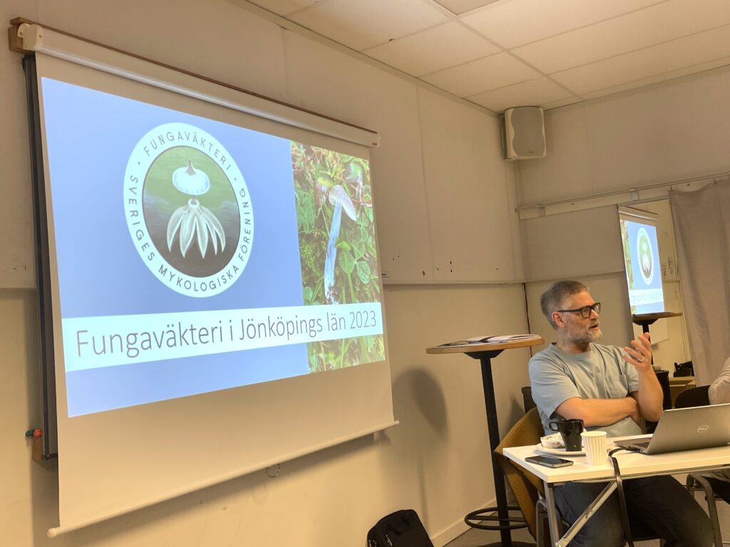 Efter mötet inmundigande vi goda mackor och kaka. Till kaffet hade Anders en presentation om projektet ”Övervakning av ängsmarkssvampar” som genomförts under 2023 i Jönköpings län!