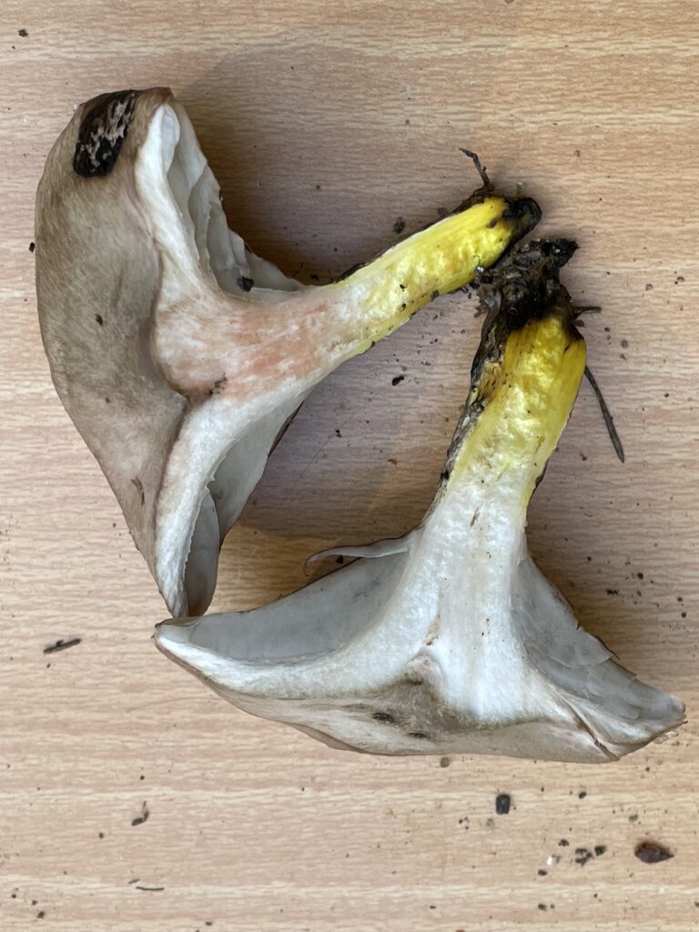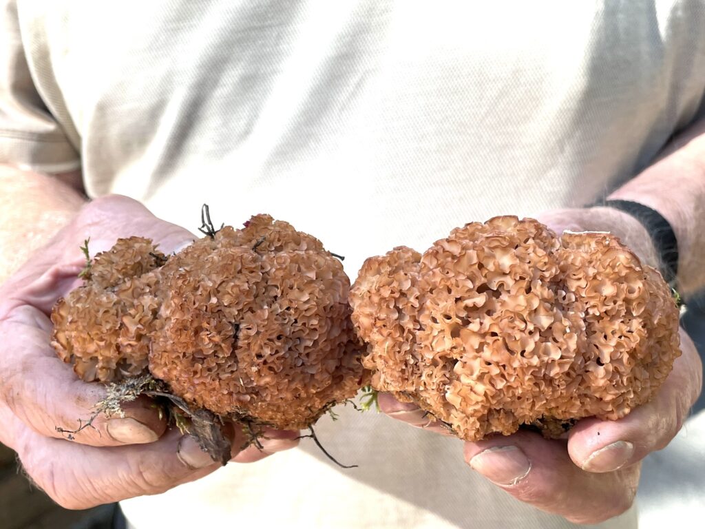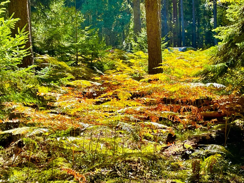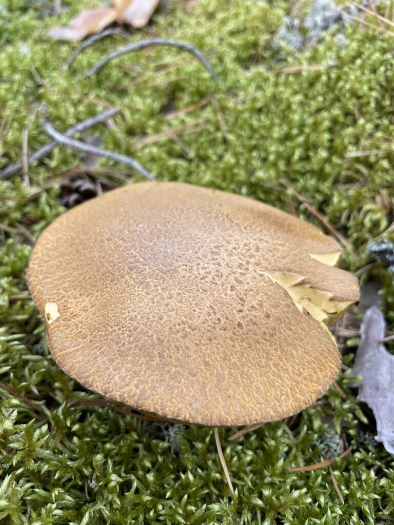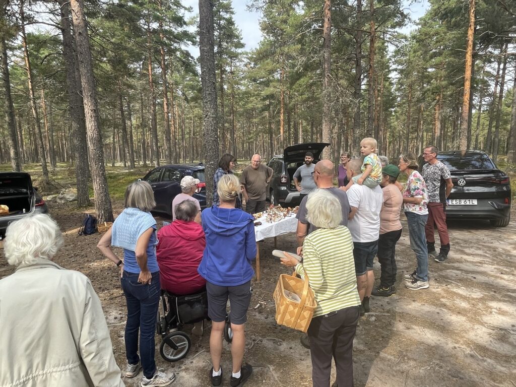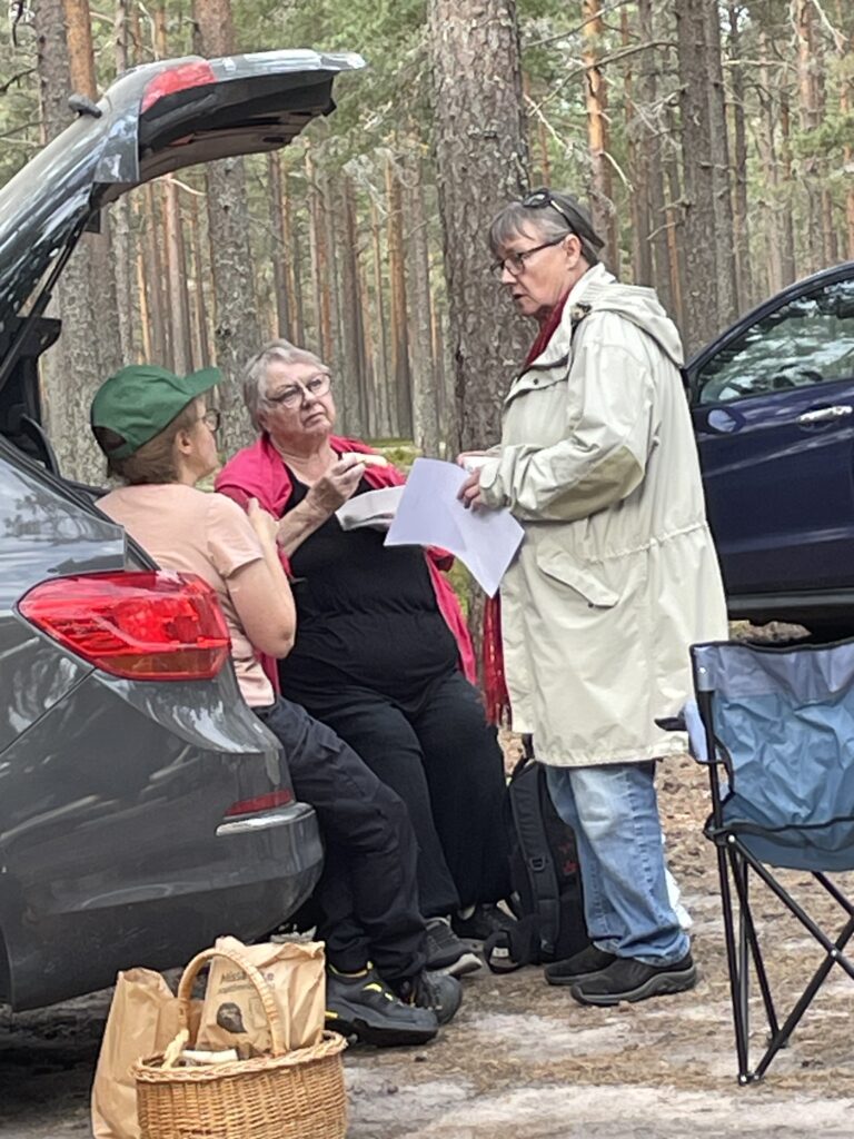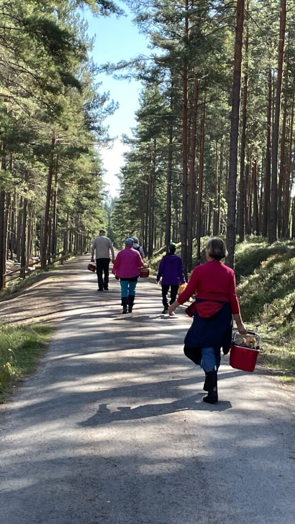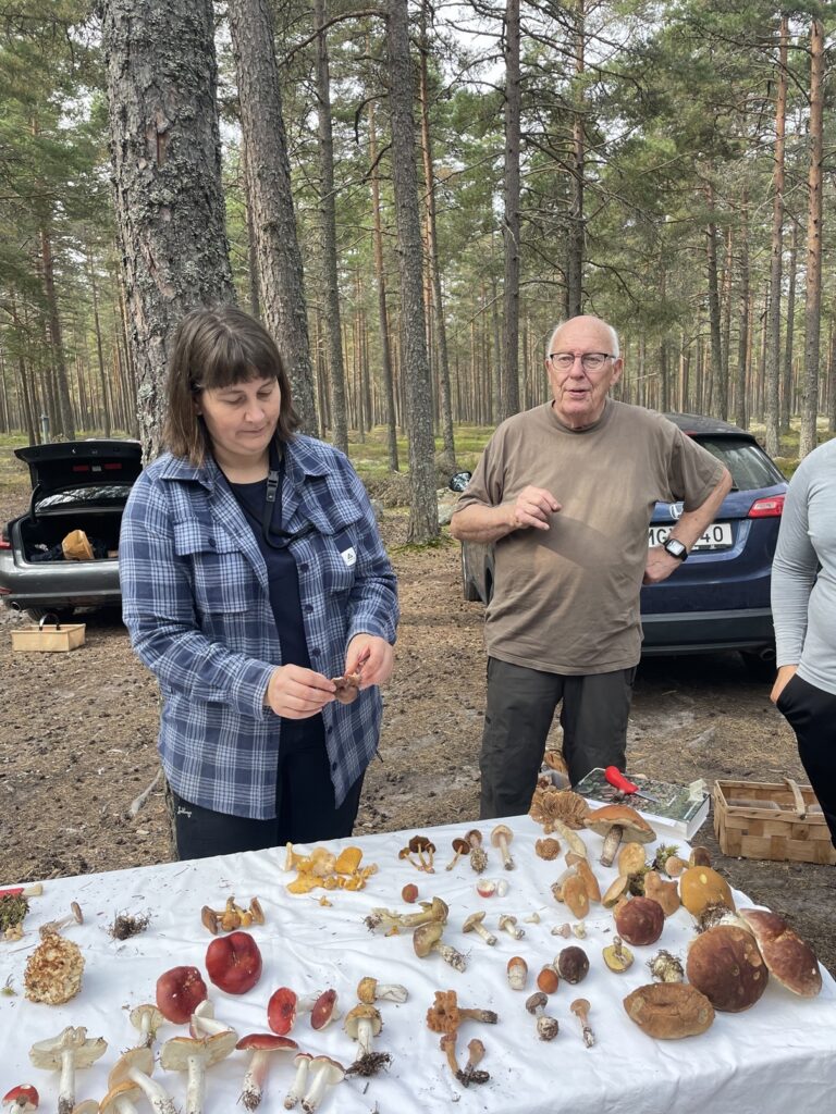 En fin dag i sandtallskogen där Anna Kjellander guidade både bland färgsvampar som dropptaggsvamp och sammetsfotad pluggskivling samt matsvampar som sandsopp och rimskivling. Ungefär 25 personer deltog i träffen som ägde rum vid Falkens grav.