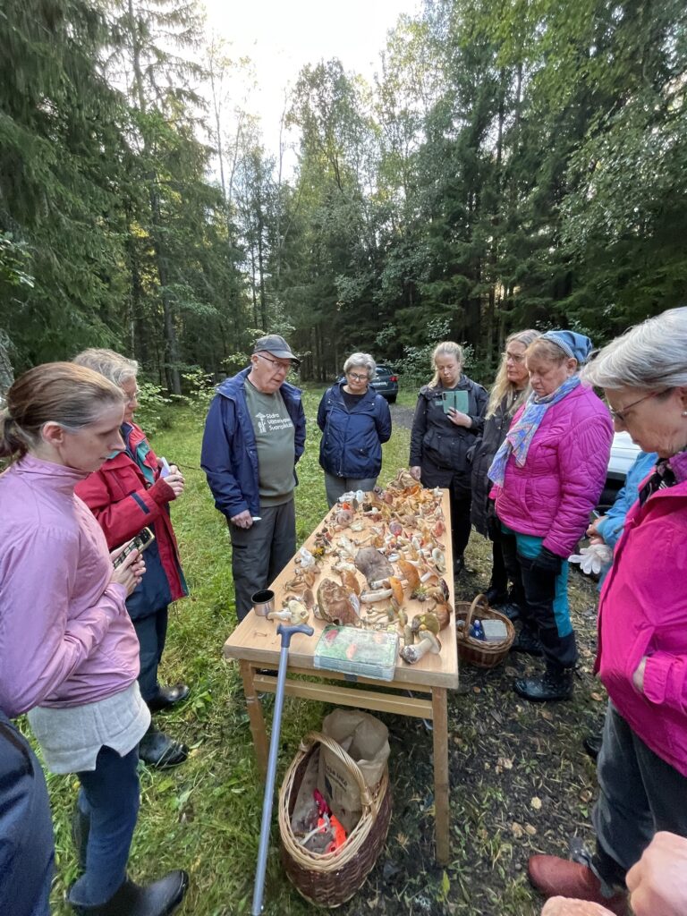 I år firade vi svampens dag på dumme mosse. Det var roligt att så många friluftsmänniskor passade på att titta på och diskutera svamp med oss! Utöver matsvamp som sandsopp och rimskivling hittade vi flera spännande taggsvampar som dropptaggsvamp, skrovlig taggsvamp, orange taggsvamp och svartvit taggsvamp.