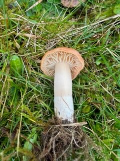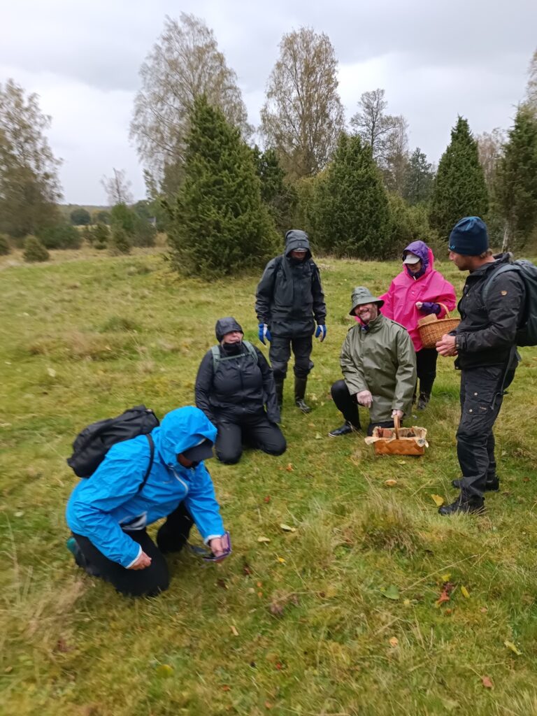 Sju tappra svampentusiaster trotsade stormen och regnet för att fynda ängssvamp. Vi gjorde en del fina fynd som praktvaxskivling, scharlakansvaxskivling, lutvaxskivling och mjölrödling. Samtliga rödlistade! Fingersvampar och jordtungor lyste tyvärr med sin frånvaro.